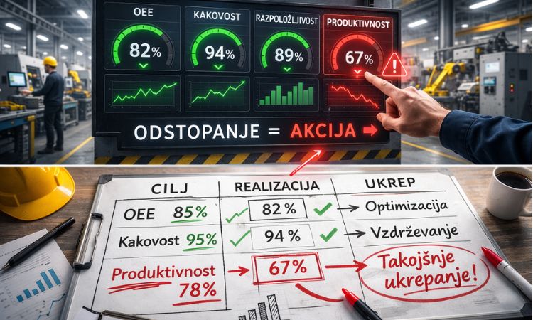 Vendar samo merjenje še ne pomeni upravljanja. KPI-ji praviloma merijo rezultat. Ne zagotavljajo pa, da bo odstopanje sprožilo pravočasno, strukturirano in odgovorno reakcijo.